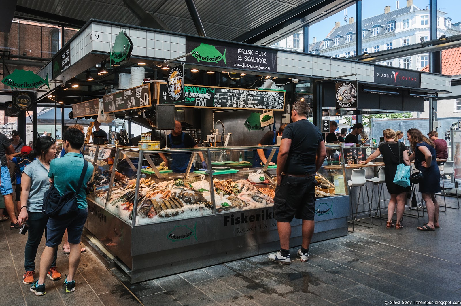 Посещение рынков у меня, похоже, становится доброй традицией. Не стал исключением из традиции и город Копенгаген. Torvehallerne - современный рынок, расположенный в центральной части города. Выполнен в модном формате фуд-кортов, то есть многое из купленного можно тут же съесть. Выбор широк: на рынке работают более 60 магазинов.