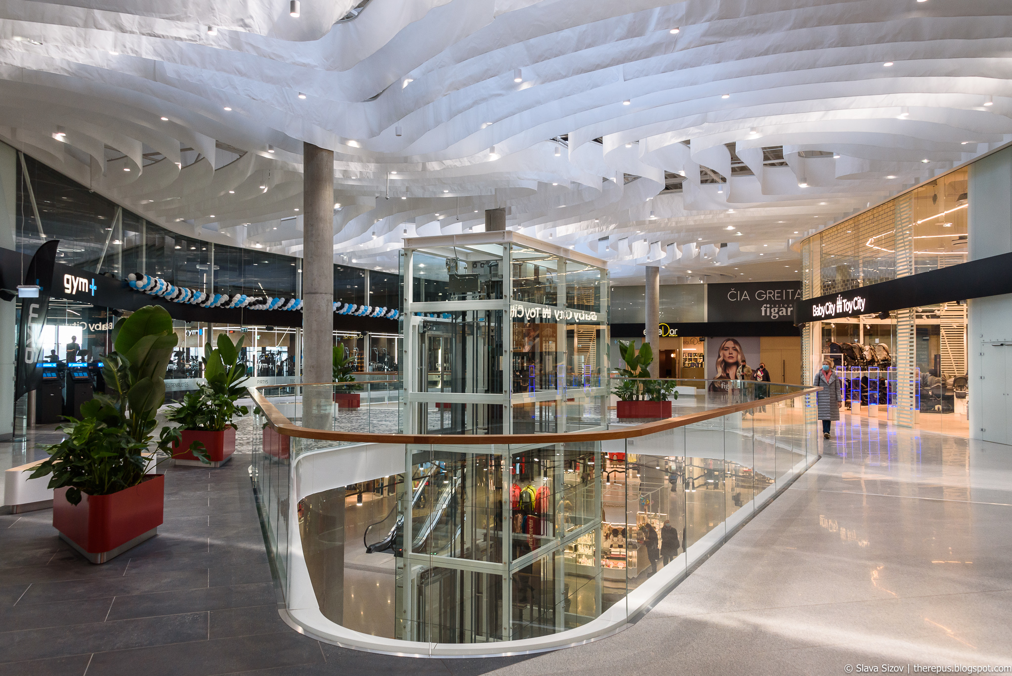 Планировка ТЦ проста: на первом этаже огромный Rimi, на втором - магазины, на третьем - бары-рестораны и зоны развлечений.