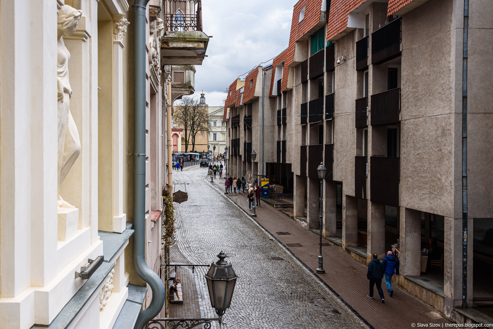Место, откуда сняты фотографии, не является секретным, но часто на него не попадешь. Это - балкон Дома подписантов (Signatarų namai).